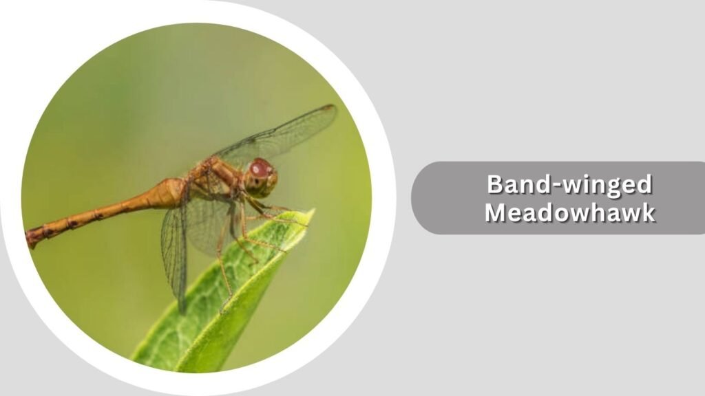 Band-winged Meadowhawks are active fliers and are often seen resting on grasses between flights. They hunt small flying insects and contribute to natural pest control. Males may guard territories, especially around breeding areas.
