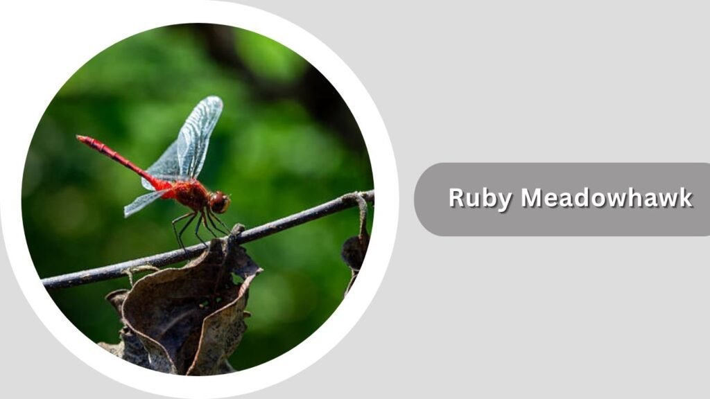 The Ruby Meadowhawk is a common red dragonfly recognized for its deep ruby coloration in mature males. It is widely distributed across North America and is often seen in late summer.